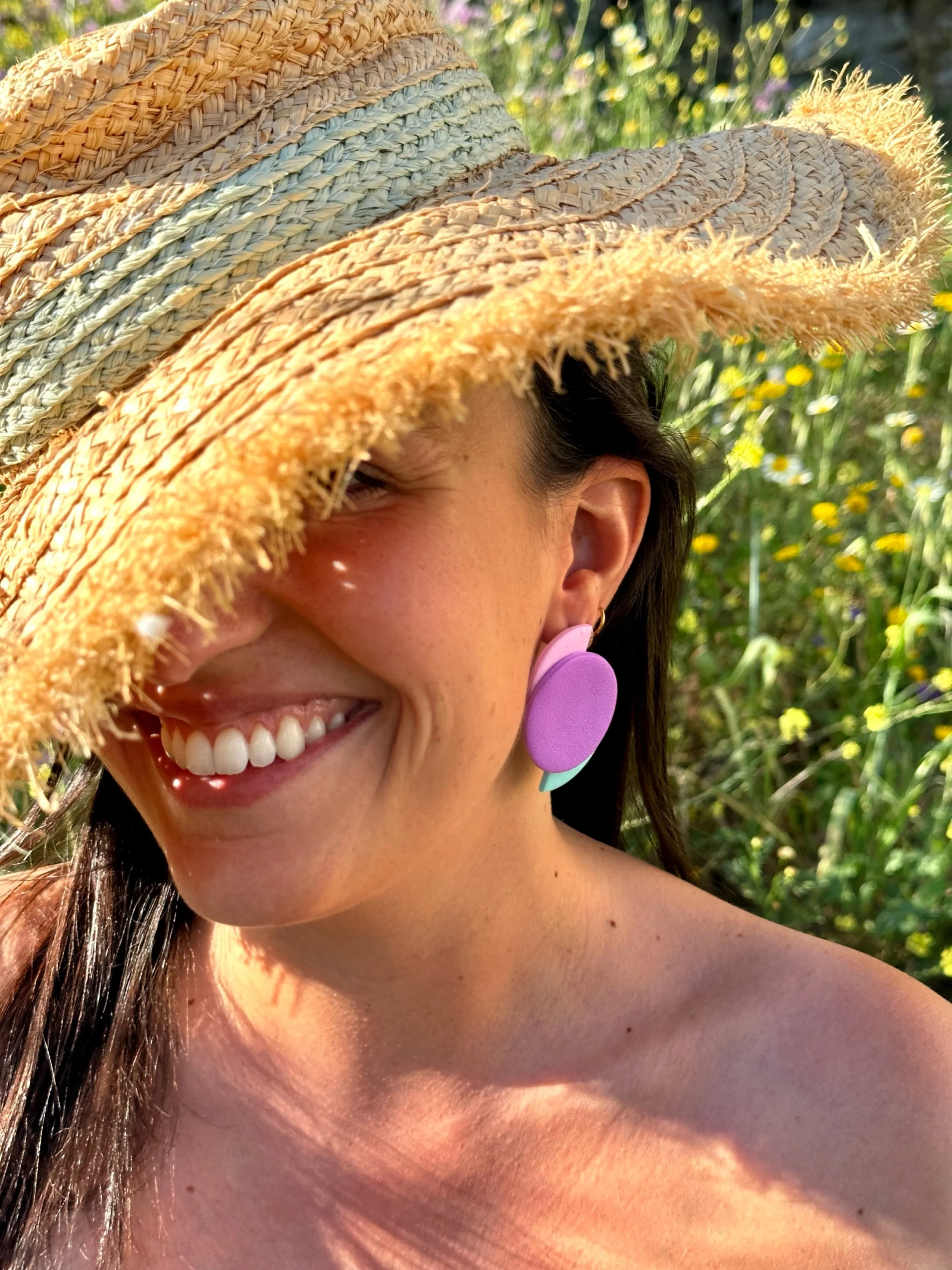 Brincos Aura com espigão em aço inoxidável antialérgico.